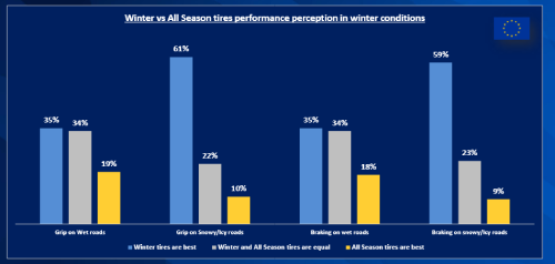 - 61% potrošača vjeruje da zimske gume imaju najbolje prianjanje na ledu i snijegu.